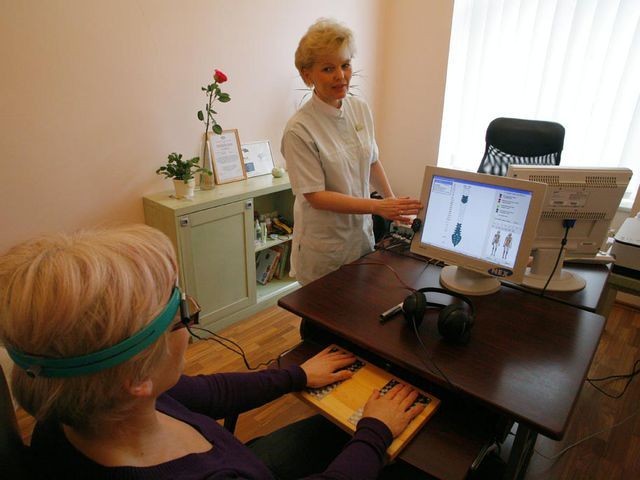 Patsient hoiab peos väikest metallpulgakest, mis asub mõõtma tema organite elektromagnetvõnkeid.